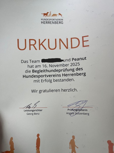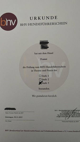 besteht im November den BHV-Hundeführerschein und die Begleithundeprüfung.